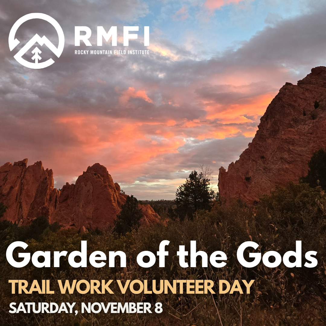 Activity: This City of Colorado Springs Parks property sees over 4 million visitors annually; this trail project in Garden of the Gods will address issues caused by erosion and high-use impacts. Project tasks will include moving dirt material to regrade the eroded trail under the guidance of RMFI staff. This is moderately strenuous work using tools in the outdoors. Be prepared for a rewarding day of trail work! If you have concerns about accessibility on this stewardship day, please reach out to us.