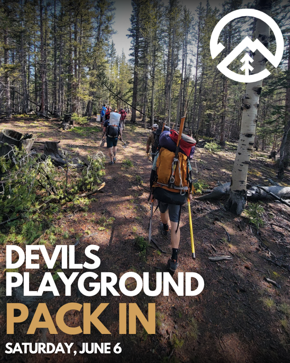 We will be heading up for another fantastic year building the Devils Playground reroute for the 2026 season. Our crews need your help as we move higher up on this project. We are in need of packing in the supplies for the season. Volunteers should be prepared to carry a minimum of 45 pounds with no more than 60 pounds downhill, one should be prepared for a 2-mile hike 1-way to above 11,400 ft.